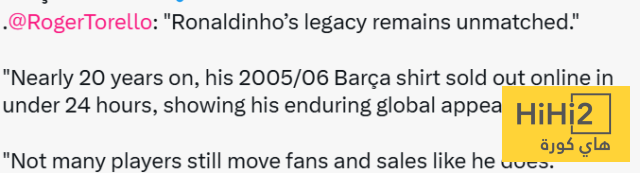 لا يزال إرث رونالدينيو فريدا من نوعه ، بعد مرور ما يقارب العشرين عاما ، نفدت جميع نسخ قميصه الخاص بفريق برشلونة لموسم 2005/2006 عبر الإنترنت في أقل من 24 ساعة ، مما يدل على شعبيته العالمية الدائمة ، قلما نجد لاعبين آخرين يجذبون الجماهير ويحققون مبيعات مماثلة .