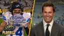 Tom Brady awards Detroit Lions WR Amon-Ra St. Brown with the LFG Player of the Game after his tough performance against the Green Bay Packers in Week 9.