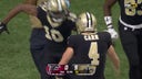 Derek Carr linked with Marquez Valdes-Scantling on a 40-yard touchdown to extend the New Orleans Saints’ lead to 10-0 over the Atlanta Falcons.