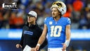 LeSean McCoy gives Jim Harbaugh his flowers for the Los Angeles Chargers’ 34-27 win over the Cincinnati Bengals.