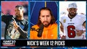 Nick Wright unveils his Week 12 picks, including the Cleveland Browns (+3.5) covering against the Pittsburgh Steelers and Baker Mayfield’s Tampa Bay Bucs (-5.5) defeating the Tommy DeVito-led New York Giants.