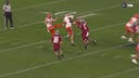The Washington State Cougars took a 21-14 lead over the Syracuse Orange after Josh Meredith recovered a block punt and took it to the house.
