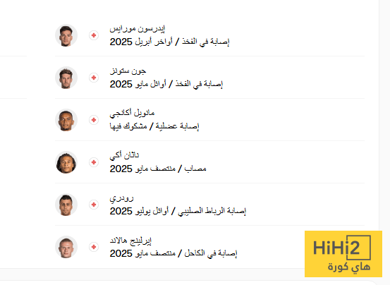 فيما يلي قائمة غيابات السيتي قبل مواجهة إيفرتون: