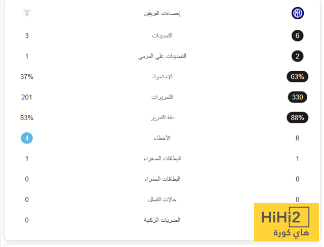 فيما يلي إحصائيات الشوط الأول من المباراة: