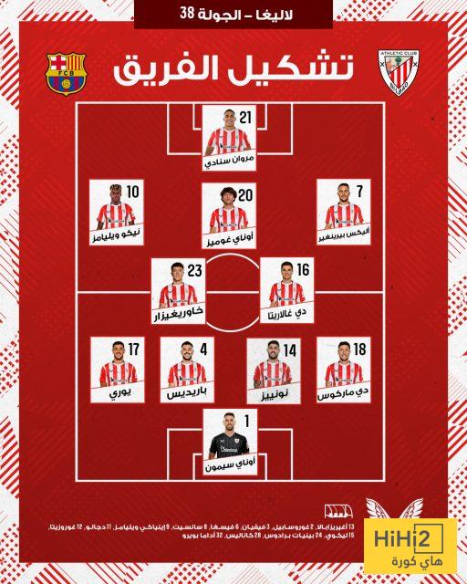 إليكم تشكيلة اتلتيك بيلباو الرسمية للقاء برشلونة: