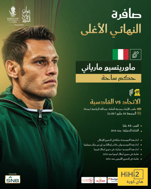 هاي كورة – استقر الاتحاد السعودي لكرة القدم، على تعيين الإيطالي ماوريتسيو مارياني حكم مباراة الاتحاد ضد القادسية، المقرر لها غدا الجمعة، ضمن منافسات نهائي كأس خادم الحرمين الشريفين.