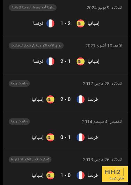 إليكم نتائج أخر 5 مباريات جمعت إسبانيا و فرنسا: