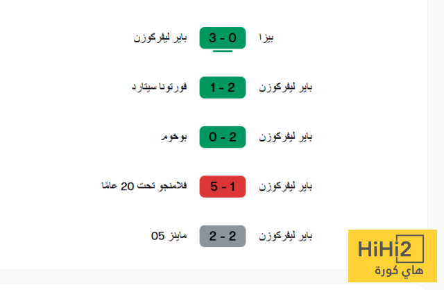 فيما يلي نتائج باير ليفركوزن في أخر 5 مباريات:-