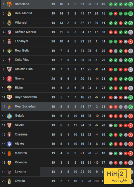 سوسيداد في المركز الـ 12 بترتيب الليغا برصيد 21 نقطة .