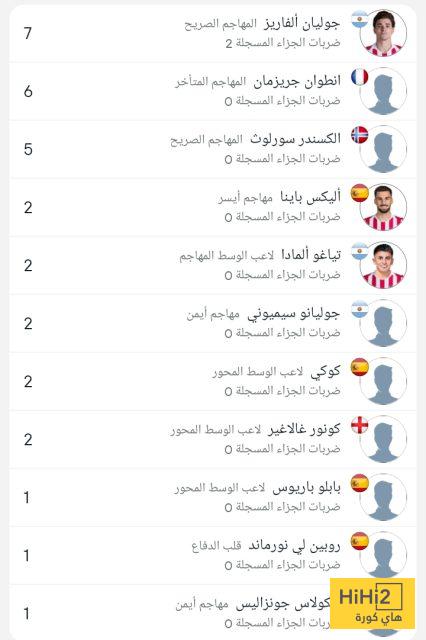 وجاءت قائمة هدافي أتلتيكو مدريد كالتالي :