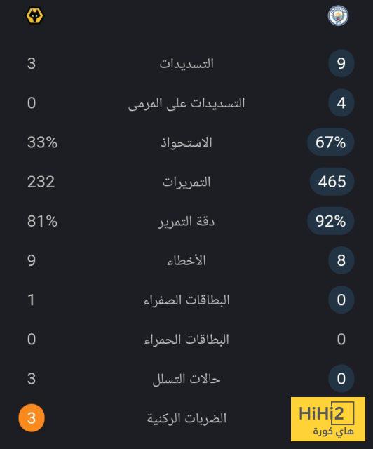 إليكم إحصائيات ساعة بين مانشستر سيتي و ولفر هامبتون :