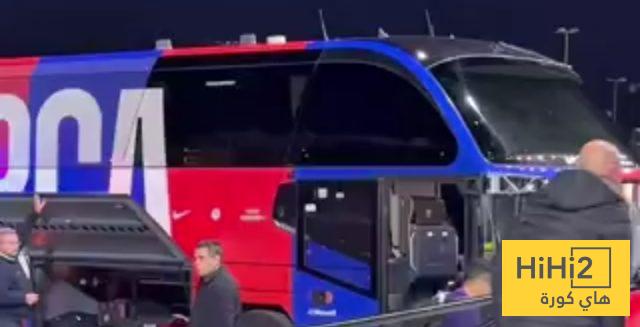 حافلة برشلونة وصلت منذ قليل إلى ملعب التشي قبل لقاء الفريقين في الدوري الاسباني.