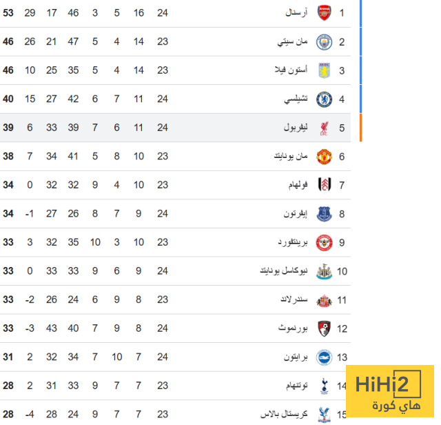 اليكم ترتيب البريميرليغ :