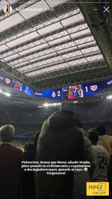 هاي كورة – بعد خسارة رايو فاليكانو أمام ريال مدريد، عبرت مارتا سوريانو، زوجة إيسي بالاثون، عن غضبها عبر إنستغرام، ووصفت ما جرى بـ«العار».